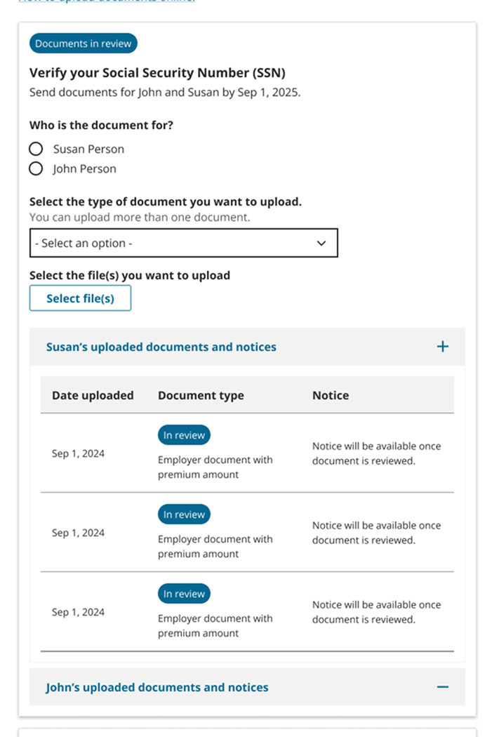 Uploaded documents are now viewable in a table with corresponding status badges.